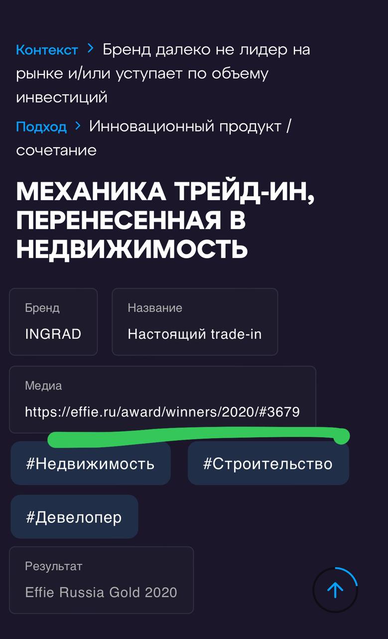 Переходим. А там — нихрена. Ссылка на заголовок кейса на сайте Effe. Все, тишина.