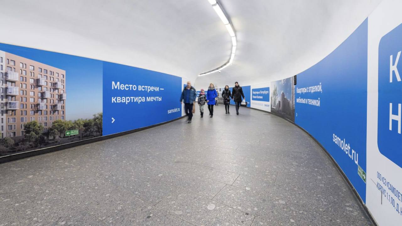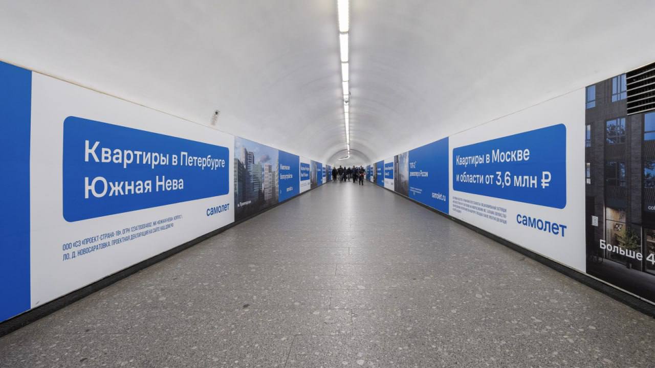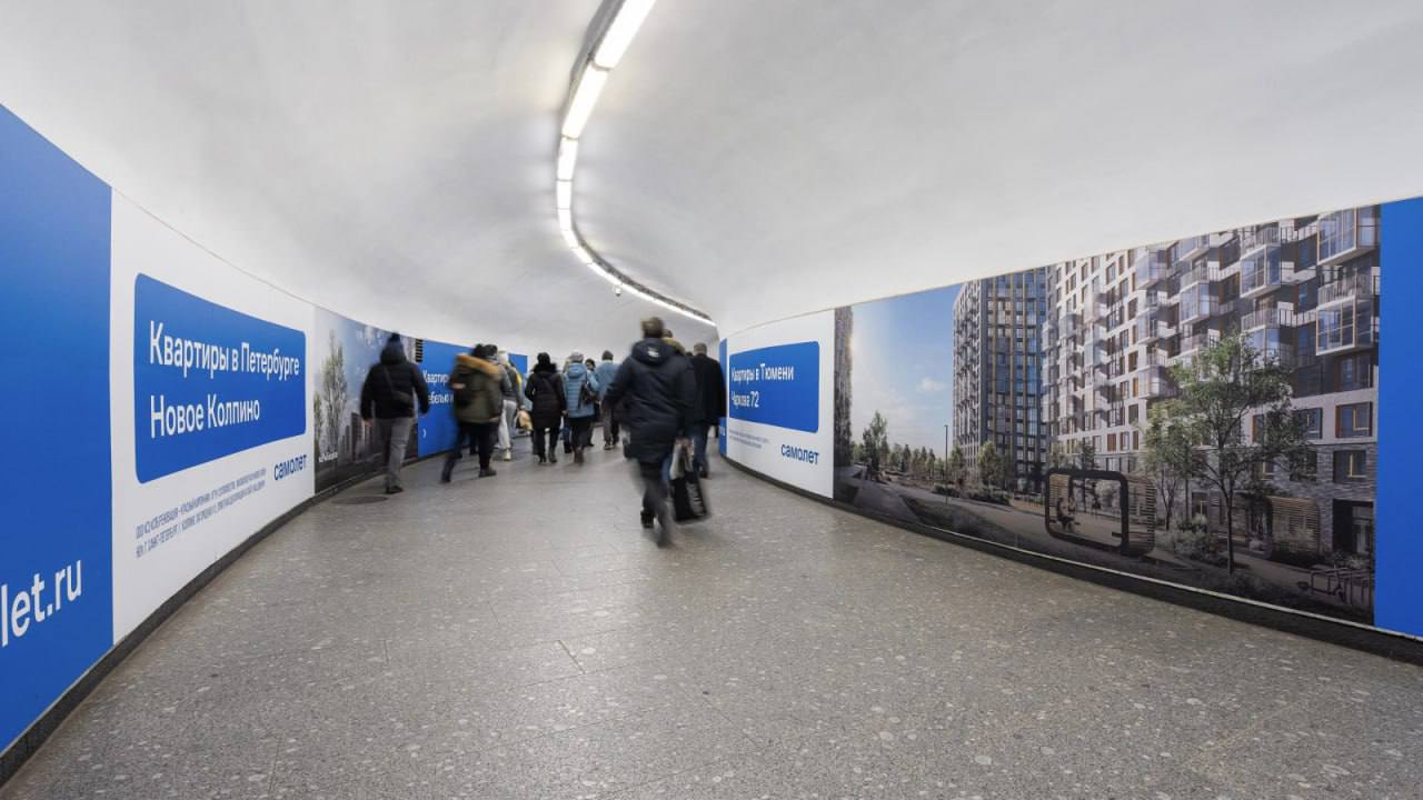 🤓 Самолет вместе с RUSS брендируют подземелья Питера целиком. Так, например, выглядит переход между станциями "Гостиный двор" и "Невский проспект".