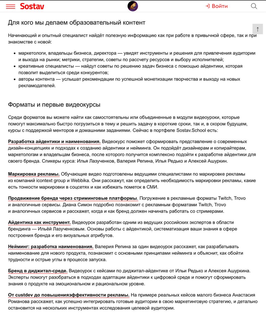 Пока курсов и преподавателей немного. Что симптоматично для сегодняшнего времени, обещают «менторов и наставников» (наставников для наставников — забыли).