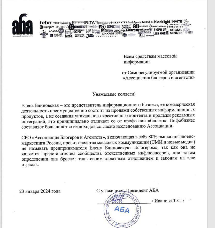 🤓 Согласимся с АБА, накатавшим справедливое письмо к СМИ. Аяз, Блиновская и тысячи иных инфоцыган — сначала жулики, а уж потом блогеры.