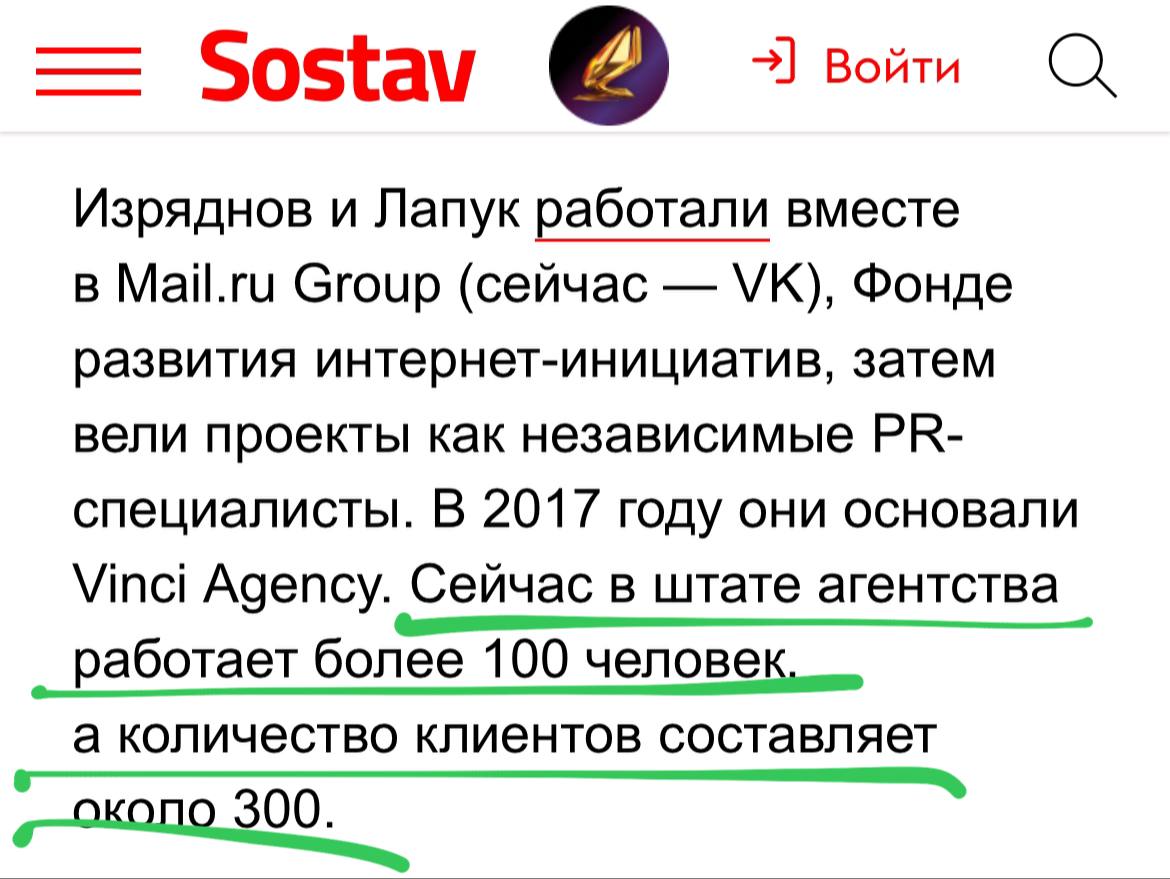 🤓 Согласно информации Состава, на одного сотрудника Vinci Agency приходится три клиента.