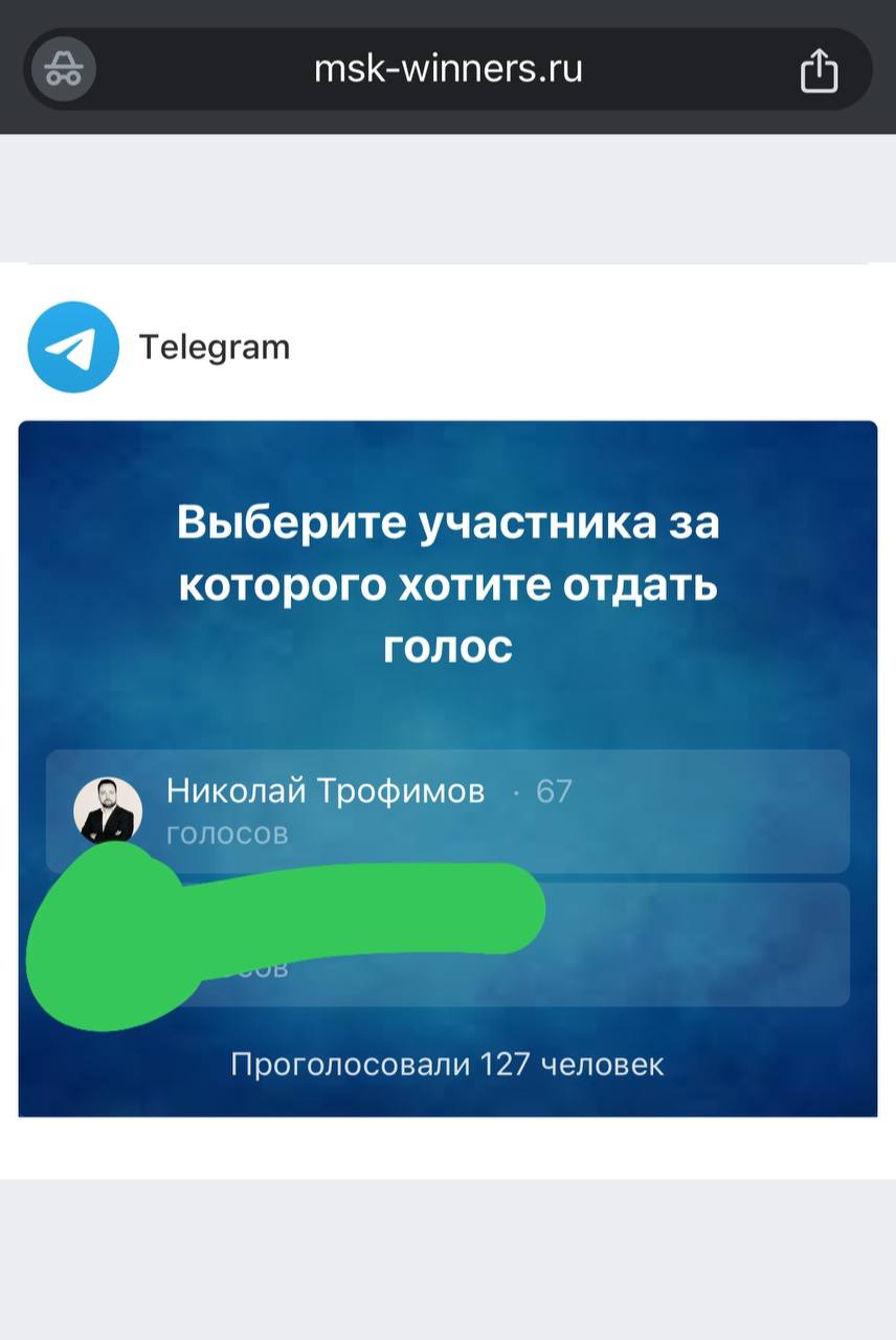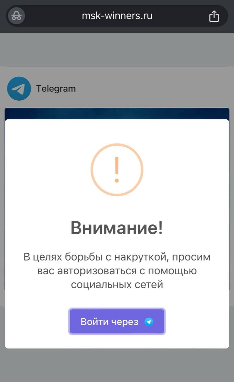 3. Далее — регистрация в голосовалке через ТГ. Ваш эккаунт у злоумылшенников!