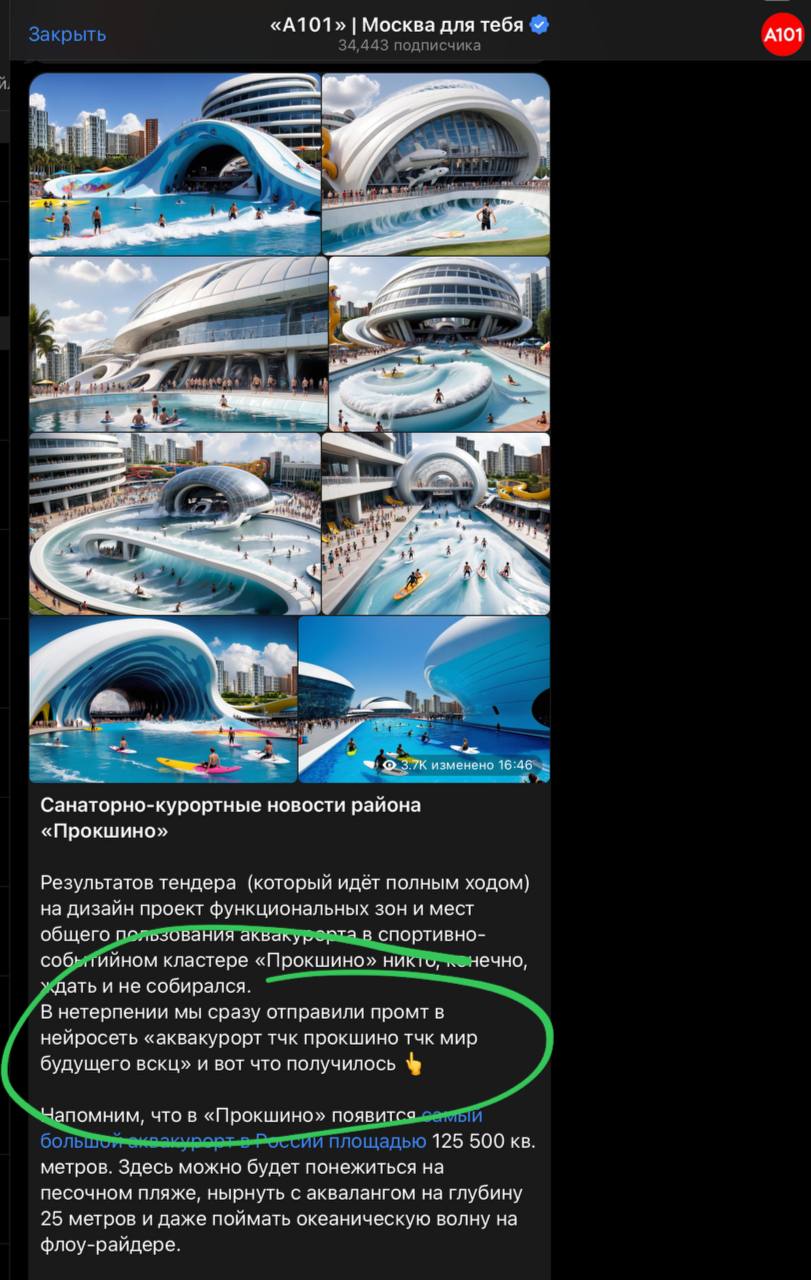 Глядите какой подлог. Вместо реального проекта объекта спортивной инфраструктуры — теперь можно ставить фантазии нейросетей, с легкой ремаркой (мы спросили AI). К слову, в реальности будет сугубо хуже…
