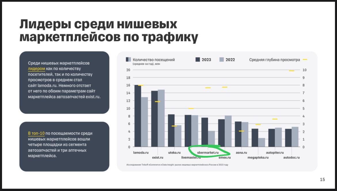 🤓 И даже с изящной поправкой «нишевые» маркетплейсы, Сбермаркет (точно не Мега, не перепутали?) — далеко не лидер.