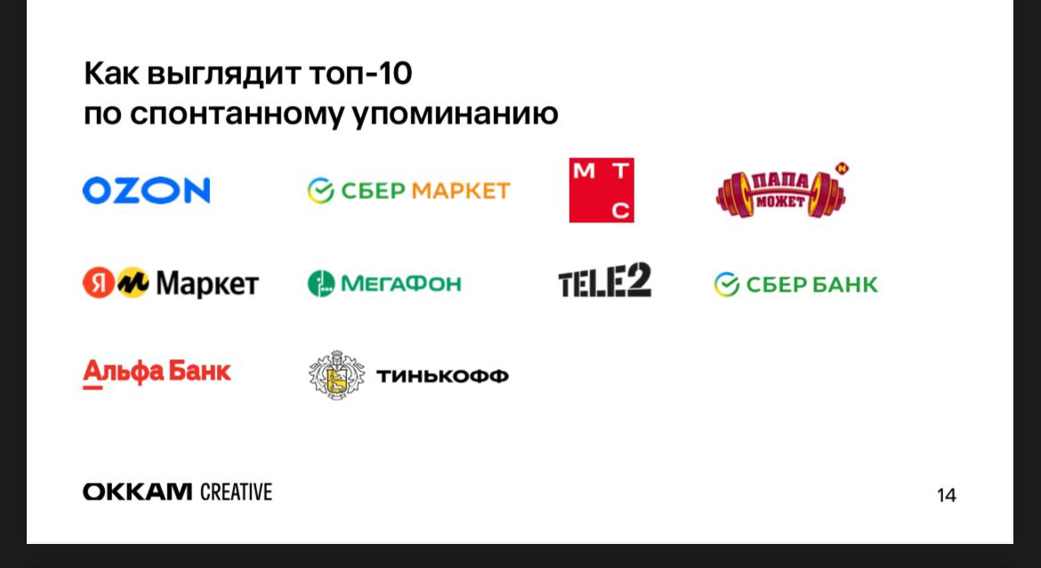Для начала отметим тот факт, что по данным ОККАМ 5 из 10 брендов-лидеров по упоминанию — их клиенты (так или иначе).