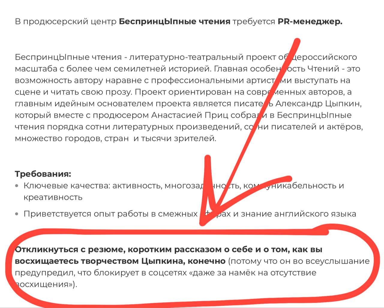 😂 Цыпкин (был такой) никогда не найдет себе пиарщика… Или — это будет пожилая, но преданная поклонница из бухгалтерии.