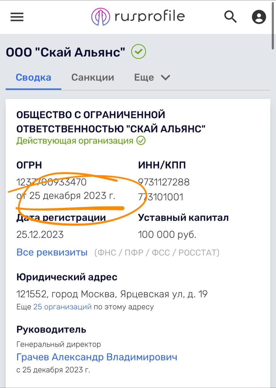 Пикантен тот факт, что юрлицо новой группы ООО «Скай Альянс» создано 25 декабря 2023 года, а приведенное выше письмо — есть заявка на участие в рейтингах этого же года от имени группы.