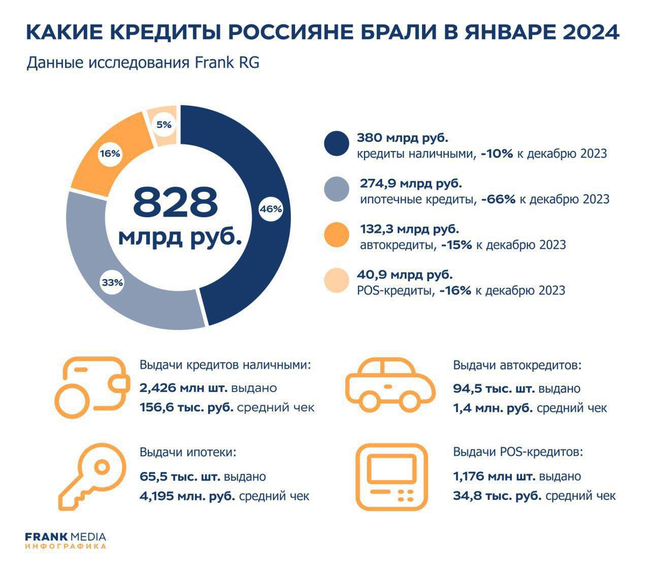 🤓 В январе 2024 года население России взяло существенно меньше кредитов, чем в декабре.