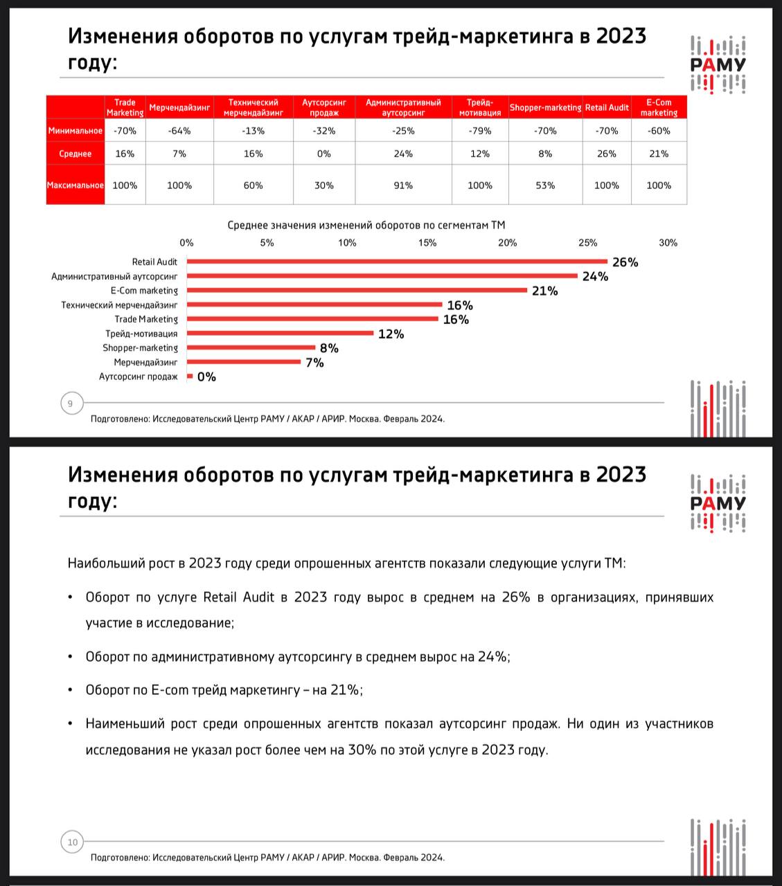 🤓 Статистика рынка трейд-маркетинга по данным РАМУ. Индустрия растет выше цифр номинальной, но ниже уровня реальной инфляции.