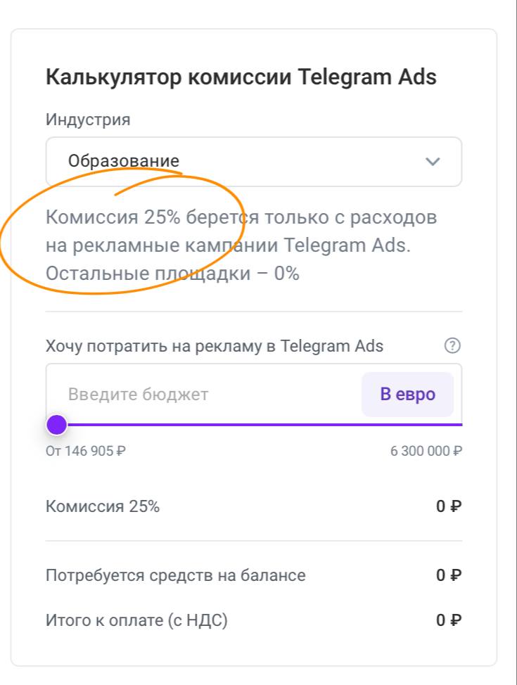 🤔 Любопытный факт. Основные платформы-продавцы Телеграм Адс с минимальным бюджетом, еще в ноябре ввели повышенную комиссию для клиентов из самых перегретых категорий: образования (читай — инфобиз) и крипты. Инфобиз теперь идет с комиссией 25%, а крипта — 30%. Вот, например, калькулятор Onespot☝🏻.