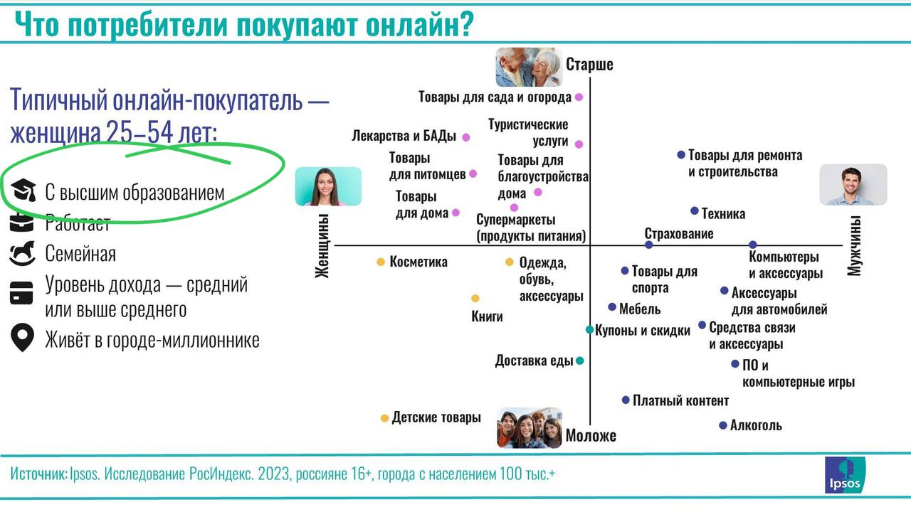 🤓 Что потребители покупают онлайн? Вообще все — отвечает нам Ipsos и дает раскладку категорий по возрастам и полу.