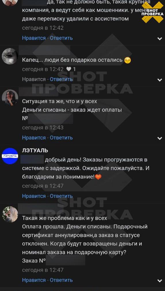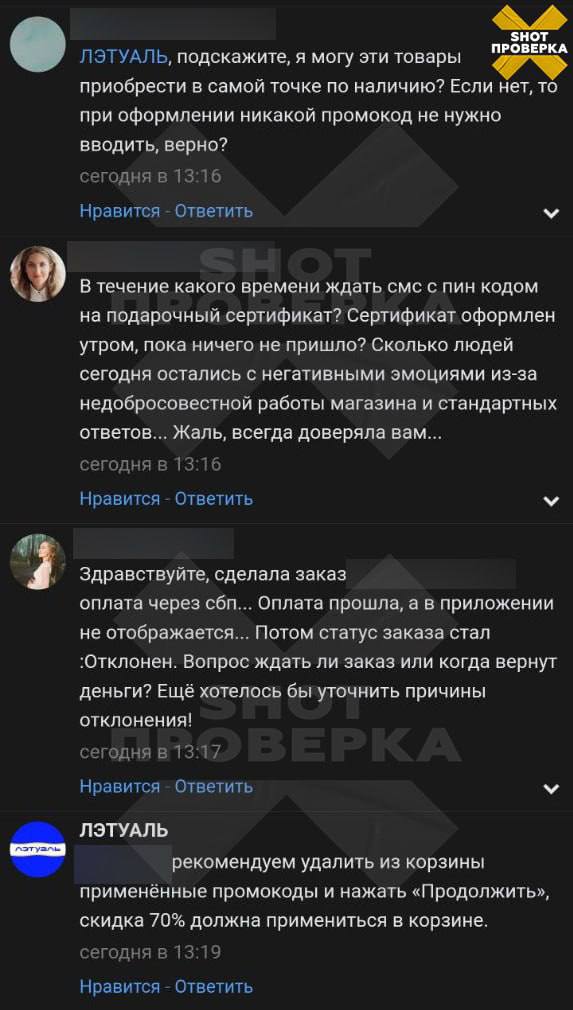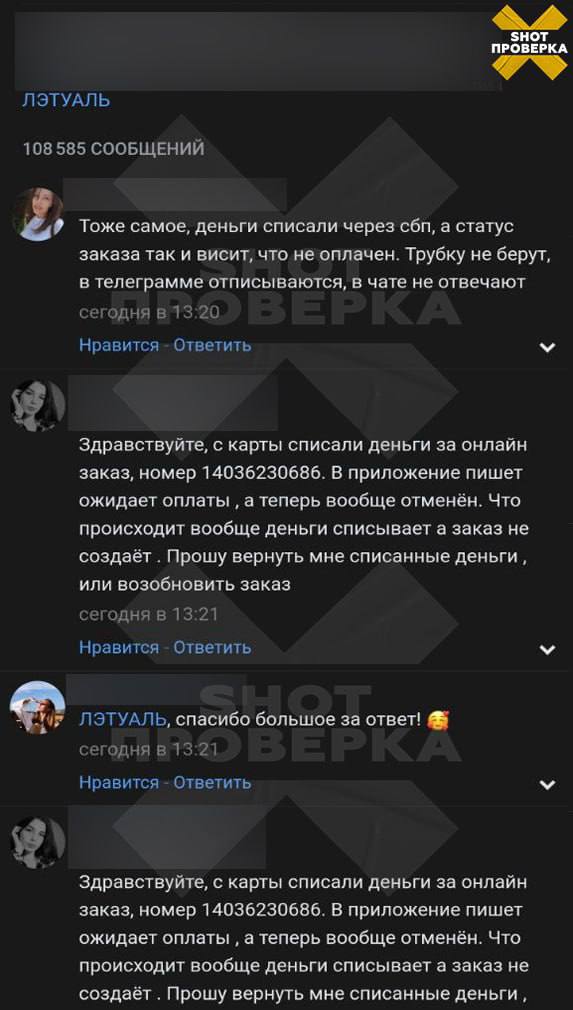 🤓 Оказывается, помимо дисфункции касс в торговых залах, у Л’Этуаля сломался еще и онлайн-магазин. Уже 8-го марта пользователи жалуются о неправильных транзакциях и списании средств без оформления заказов.