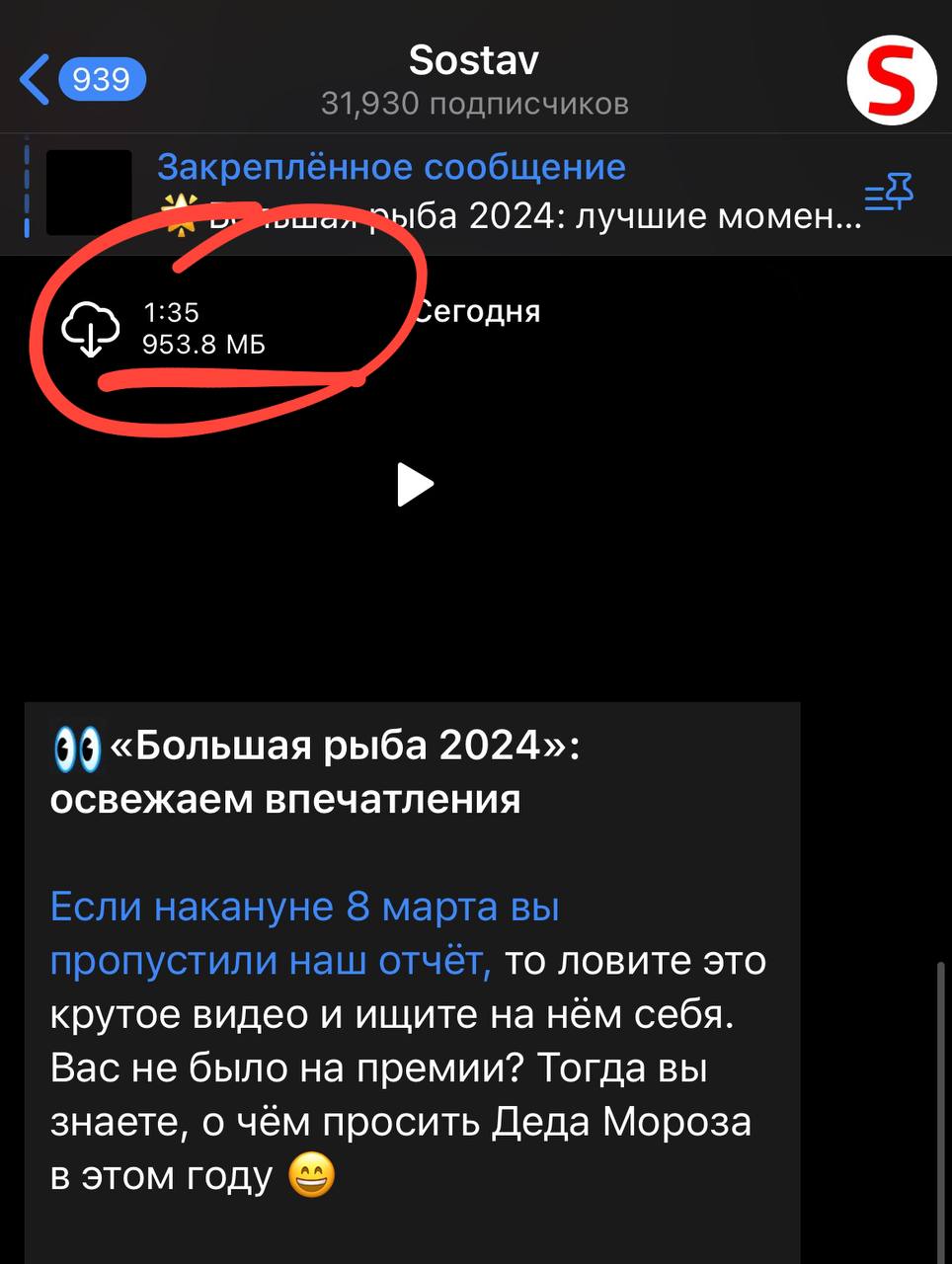 Скачай 1 Гигабайт видео в телеге и посмотри на церемонию Большая рыба — предлагает нам Состав.