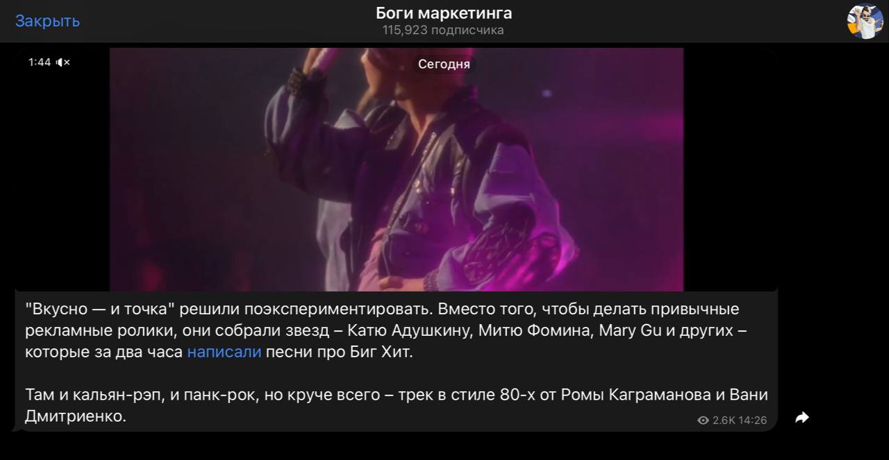 Спустя две недели Вкусноточка решила подгореть мертвый интерес аудитории к проекту (который, хотя бы за аренду студии недешево стоит) и начало бурно сеять рекламу шоу в каналах «про креативчики».