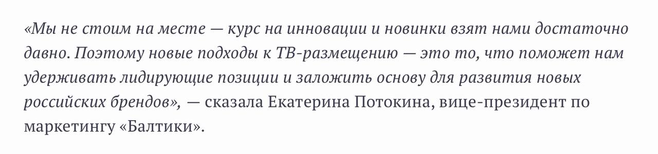 🤓 Пресс-служба NMI сообщает, что они взяли ТВ-размещение Балтики. Наши поздравления.