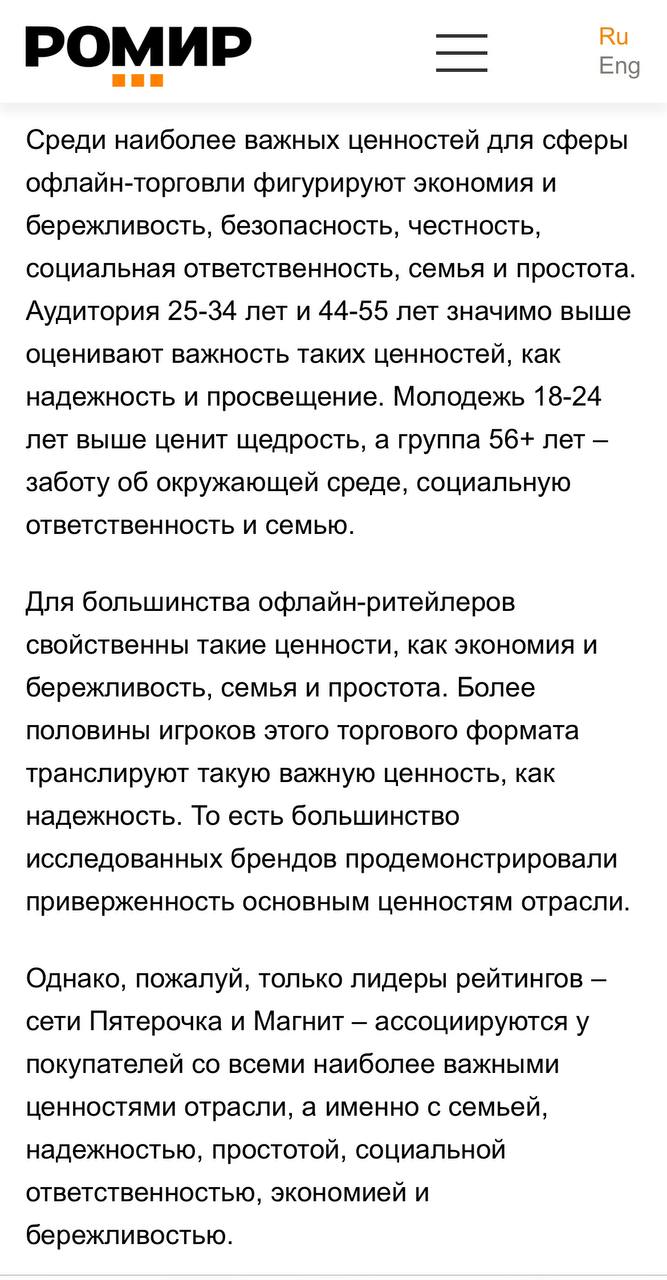 🤔 Торговые сети сквозь призму простых человеческих ценностей оценил Ромир…