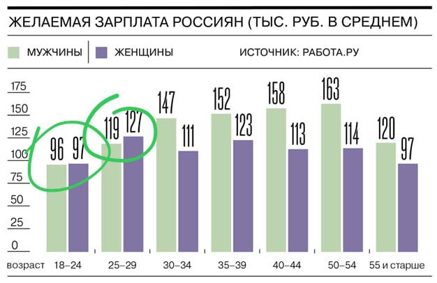 🤔 Удивительный факт. До 30 лет женщины хотят зарабатывать больше, чем мужчины. А потом хотелка угасает…
