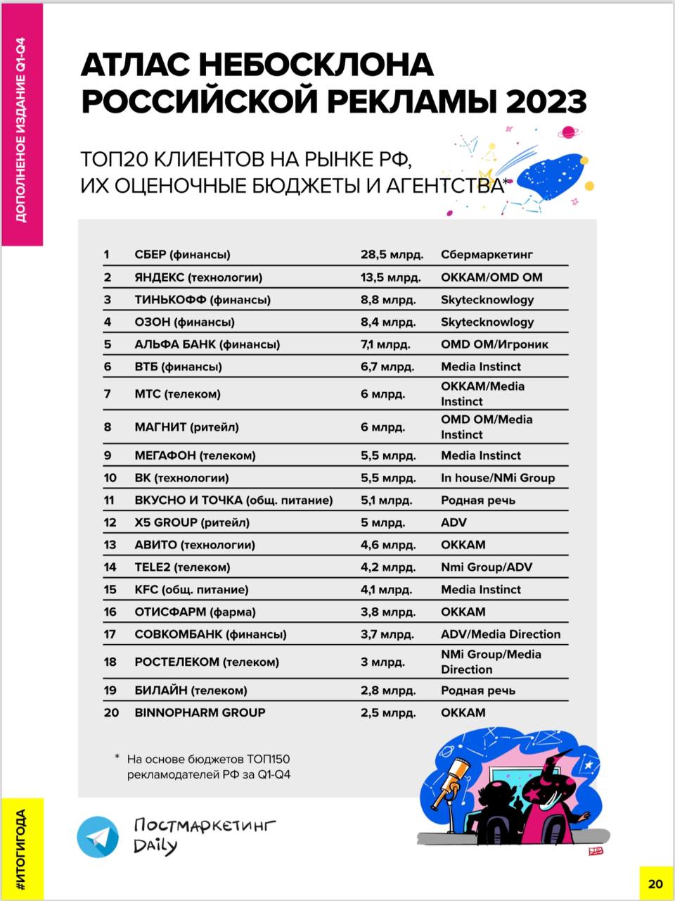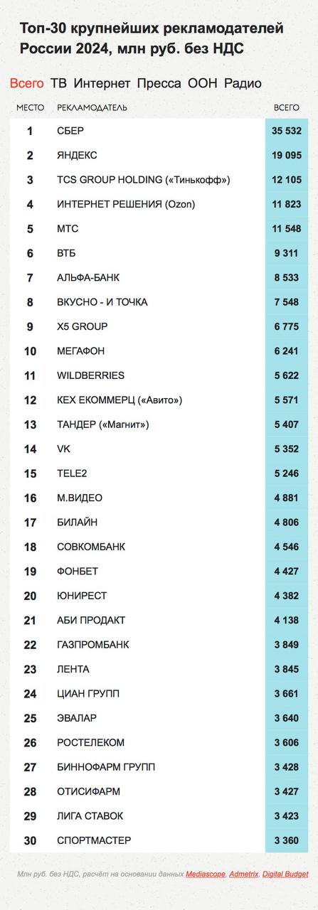 🤓 Состав выкатил оценку бюджетов топ 30 рекламодателей, которую сделал только что.