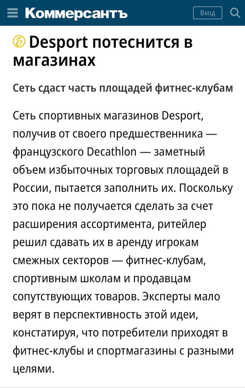 🤓 «Заметный объем избыточных торговых площадей» = системный недостаток ассортимента, нерешаемый в обозримый сроки.