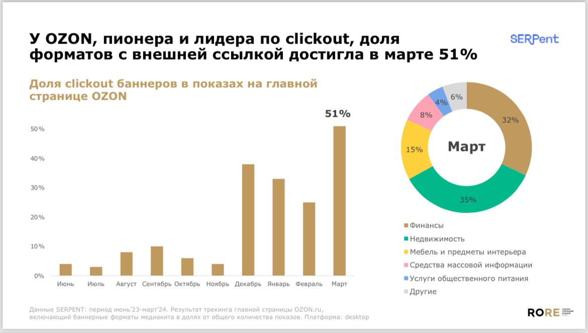 🤔 Доля кликаут-форматов на Озон перевалила за 50%.