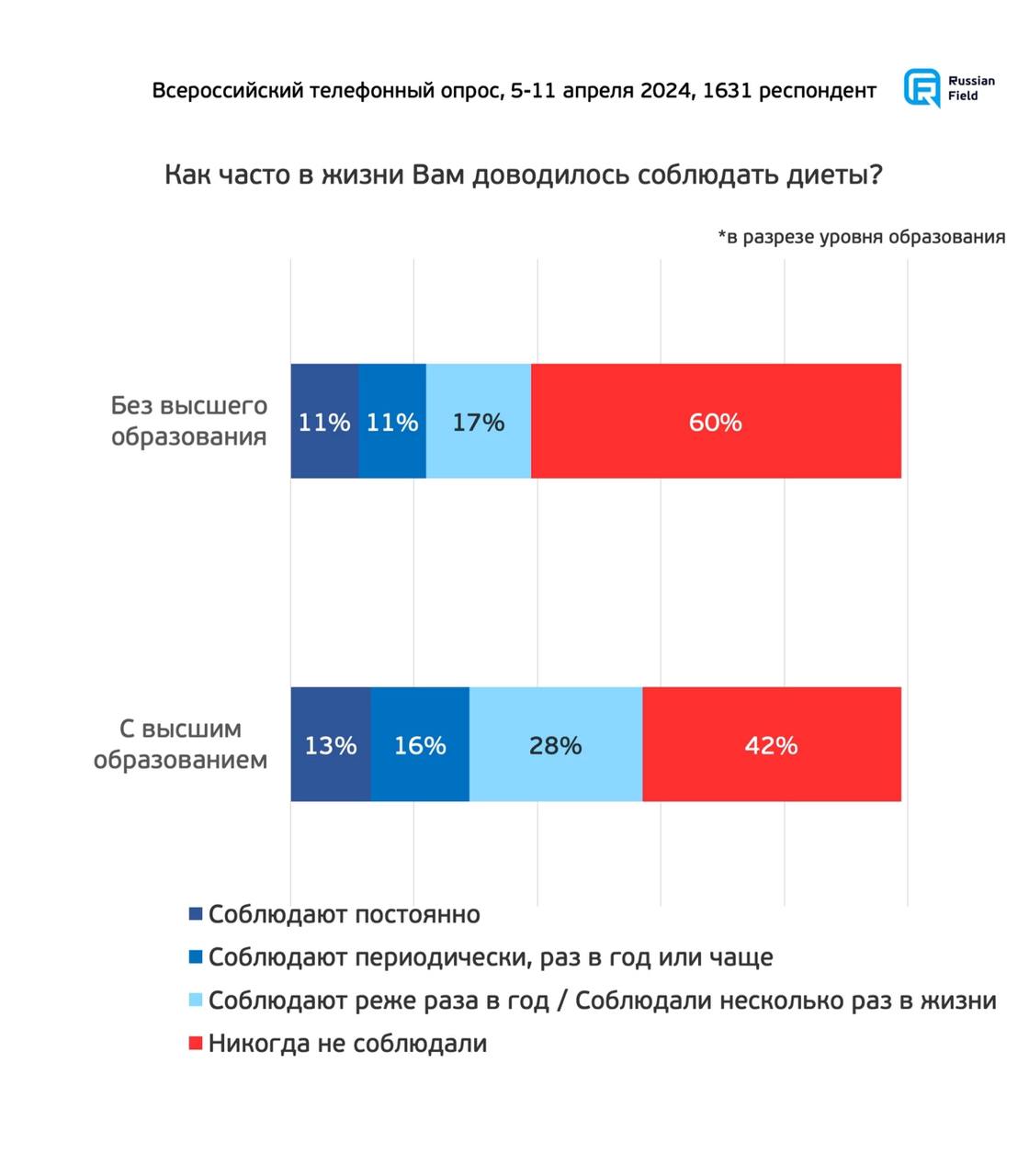 Кто придерживается разного рода диет? Женщины чаще мужчин, столичные чаще провинциальных, богатые чаще бедных, образованные чаще малообразованных. Как и следовало…