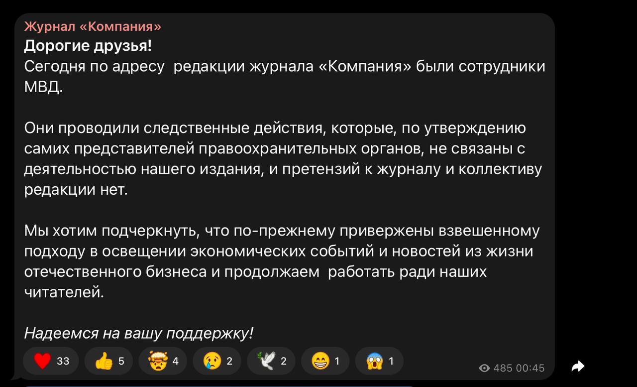 🤔 Обыски в журнале Компания не были связаны с деятельностью журнала Компания. Ну, ладно. Ок…