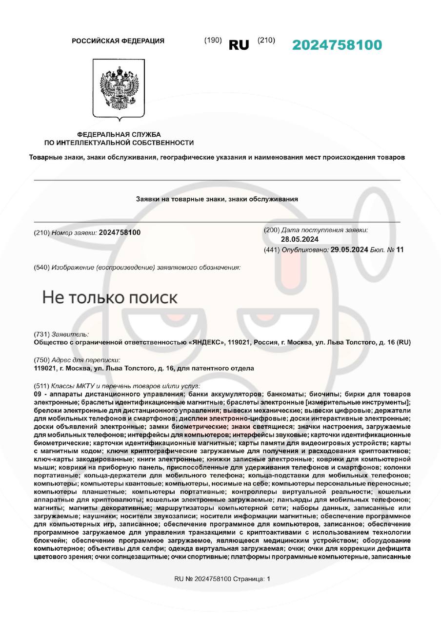 Заявление, как водится в корпорациях, оформлено в слоган и подкреплено заявкой на регистрацию товарного знака, которую нашли наши друзья в Бюро названий.