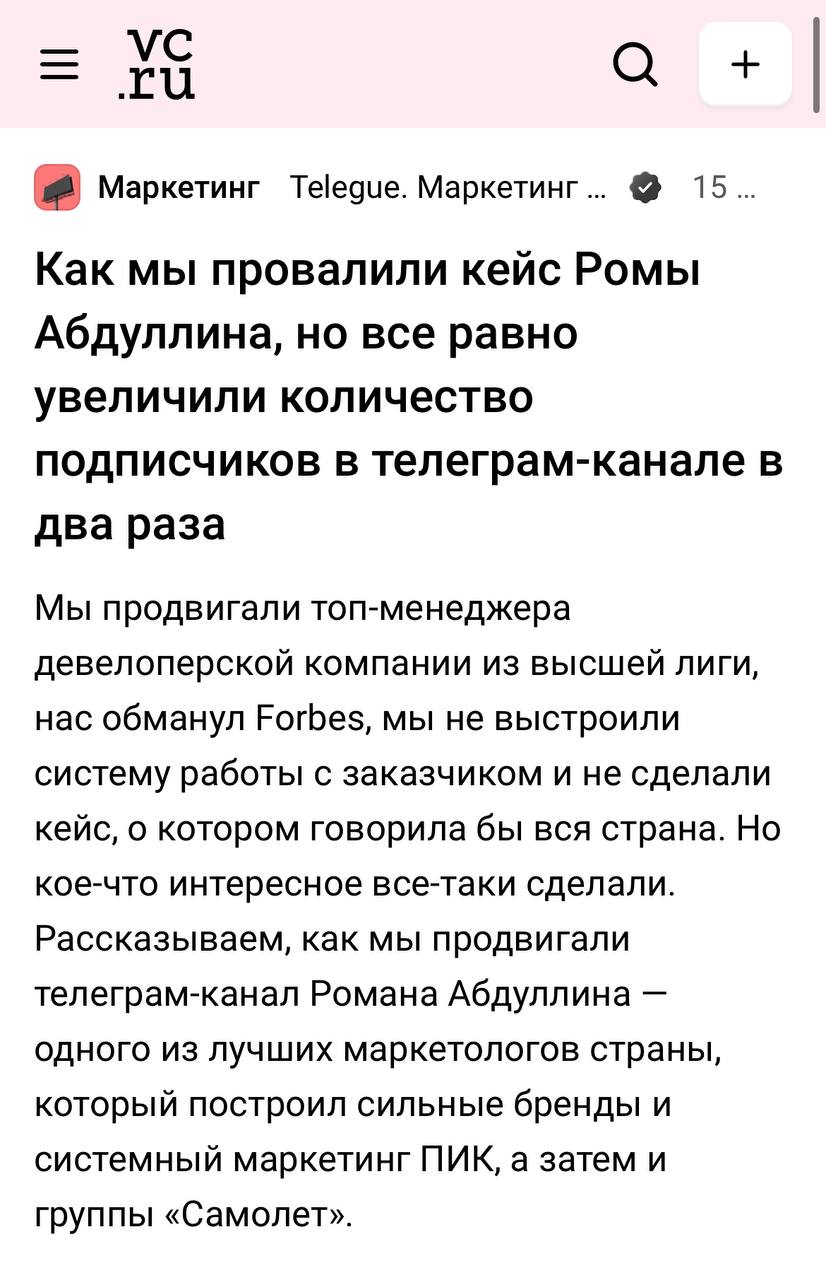 😂 Великолепная история о том, как агентство Telegue провалили проект для небезызвестного Ромы Абдуллина, но все равно увеличило количество подписчиков в его Телеграм-канале в два раза.