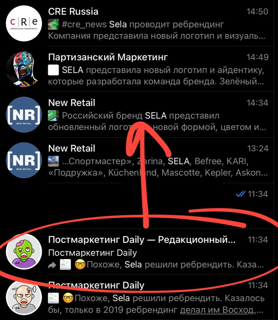 😂 Это что-то новенькое. Sela запустила размещение анонса ребрендинга в каналах через 3 часа после нашего упоминания о появлении товарного знака (постом выше).