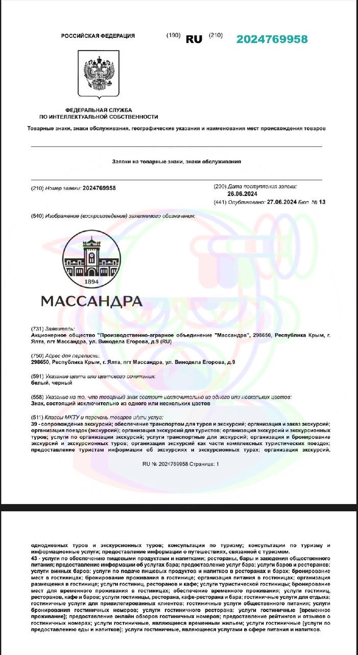 🤓 Производственно-аграрное предприятие Массандра (один из крупнейших производителей вина в РФ) расширяет товарный знак на:
