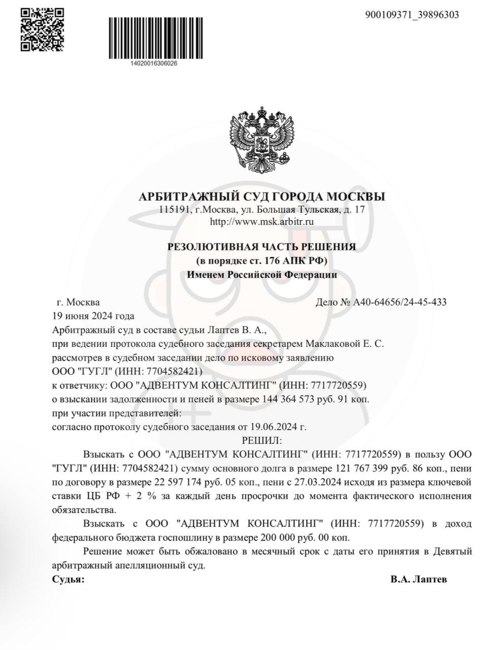 🤓 Так выглядит решение суда в пользу кредиторов Гугля в споре с агентствами.