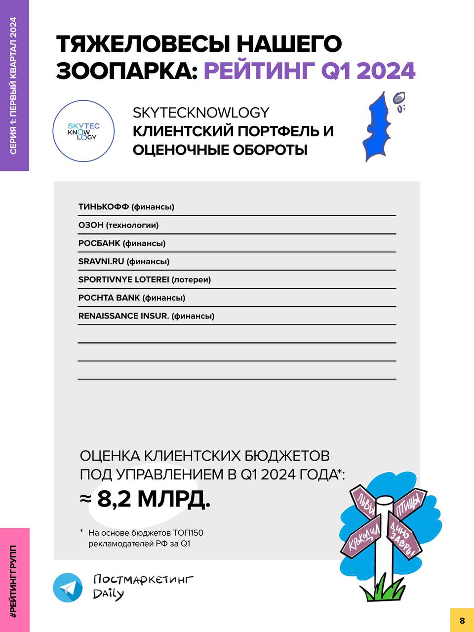 🤓 В третьей серии ежеквартальных рейтингов оборотов рекламных групп на основе бюджетов ТОП150 рекламодателей РФ от Постмаркетинга — у нас только SkyTecknowlogy. И то не как группа, а как агентство.