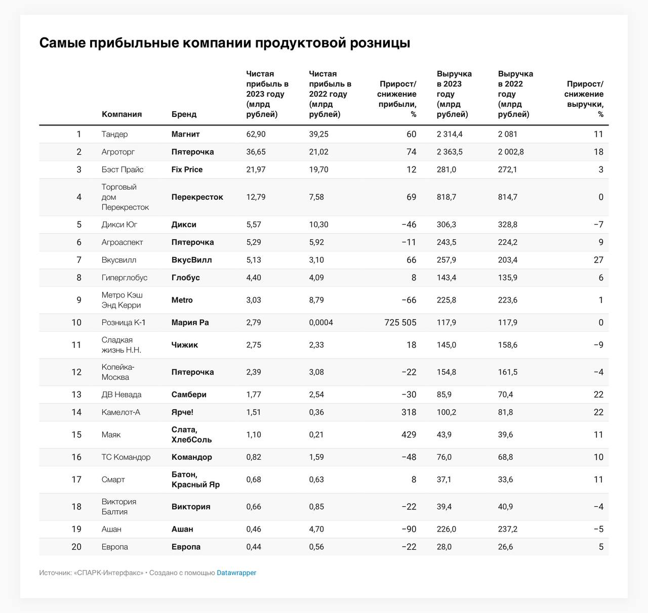 🤓 Выручка и прибыль крупнейших ритейлеров РФ за 2023 год от Форпс.