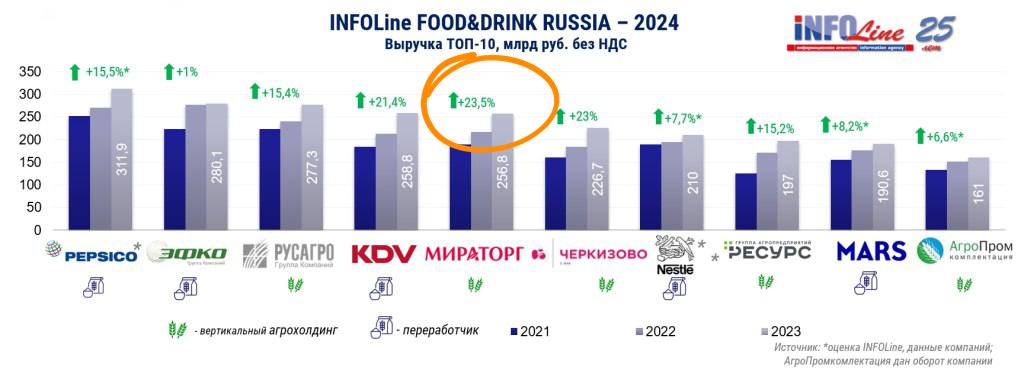 🤓 Лучше всех в стране растет Мираторг (из производителей продуктов питания).