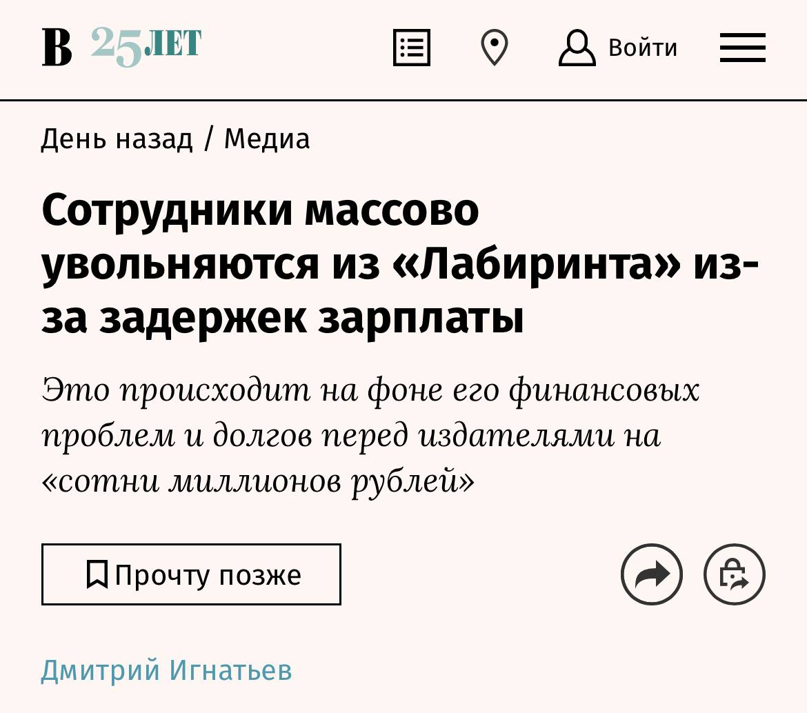 🤓 Ведомости выбивают шаткую табуретку из под бизнеса книжного ритейлера Лабиринт.