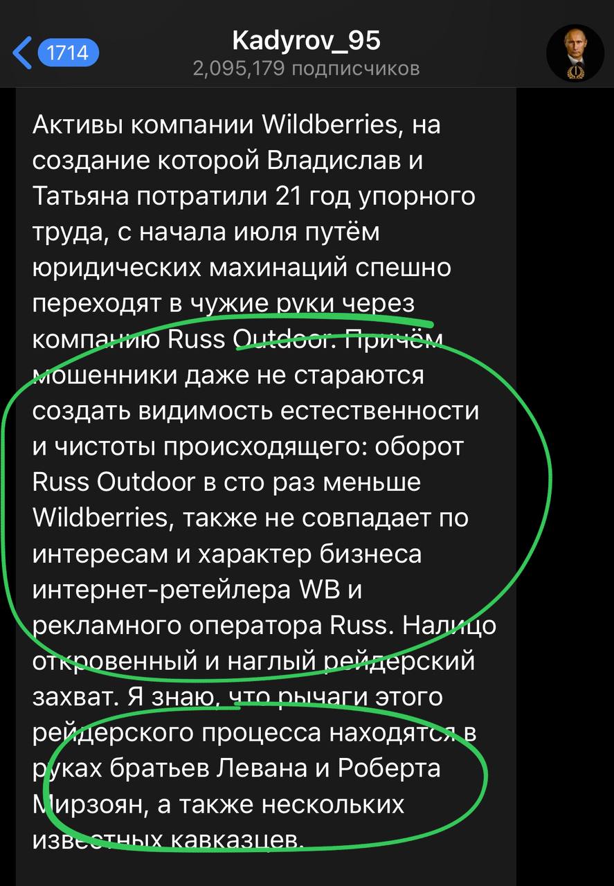 - РУСС — просто прокладка для поглощения триллионного бизнеса ВБ. Не с добывающими же предприятиями маркетплейс сливать?