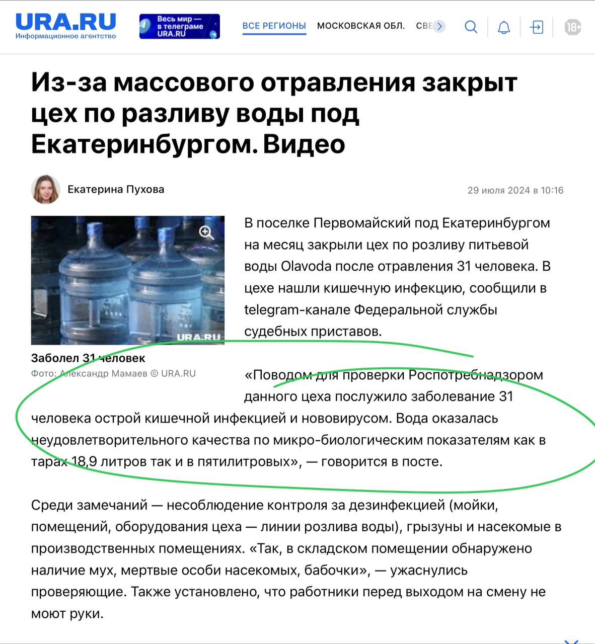 «Были нарушены санитарные правила: сотрудники не мыли руки — просто пользовались дешёвым антисептиком. Помещение и оборудование тоже никто не обрабатывал — в здании бегали грызуны и летали насекомые. После проверки у руководства компании не нашли документов о безопасности и качестве воды.»