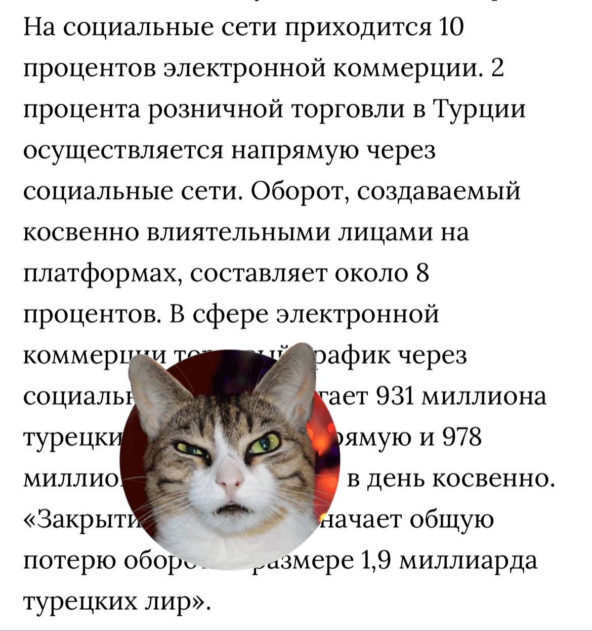 Хотя министр торговли Омер Болат заявил, что продажи, осуществляемые с помощью инструментов прямого общения не считаются электронной коммерцией, это не так. Настолько, что, по оценкам экспертов, стоимость этого запрета достигает 1,9 млрд лир в день. Всего — 13,3 за неделю.