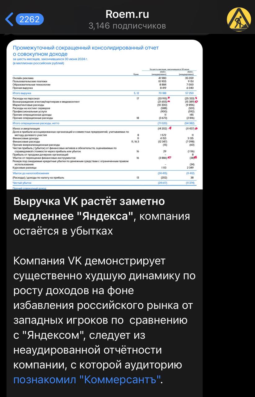 🤓 Коллеги понятно объясняют насколько финансовая эффективность ВК ниже чем у Яндекса, и почему это так.