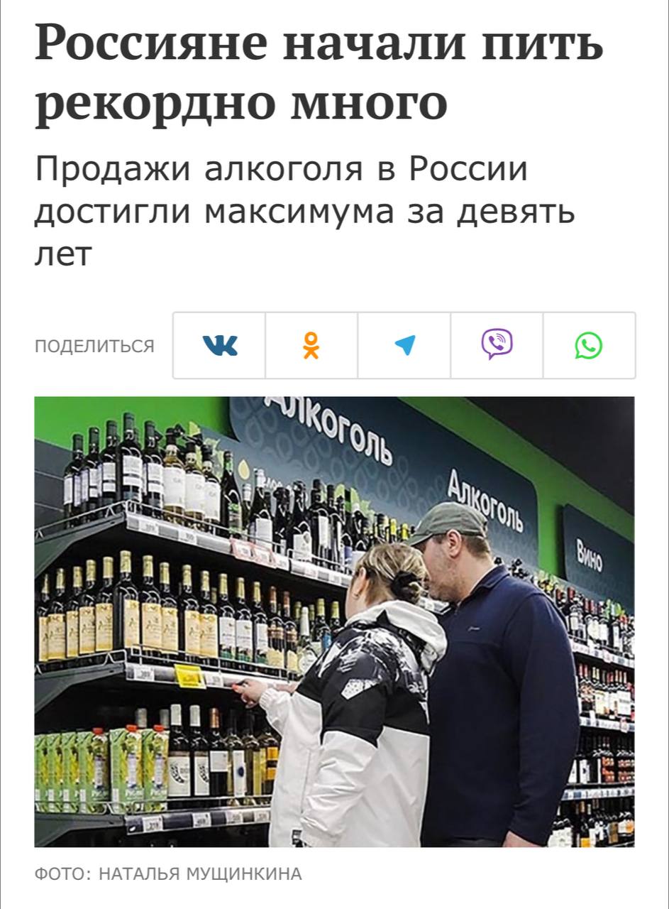В России продажи алкоголя достигли исторического максимума, а потребление — исторического минимума