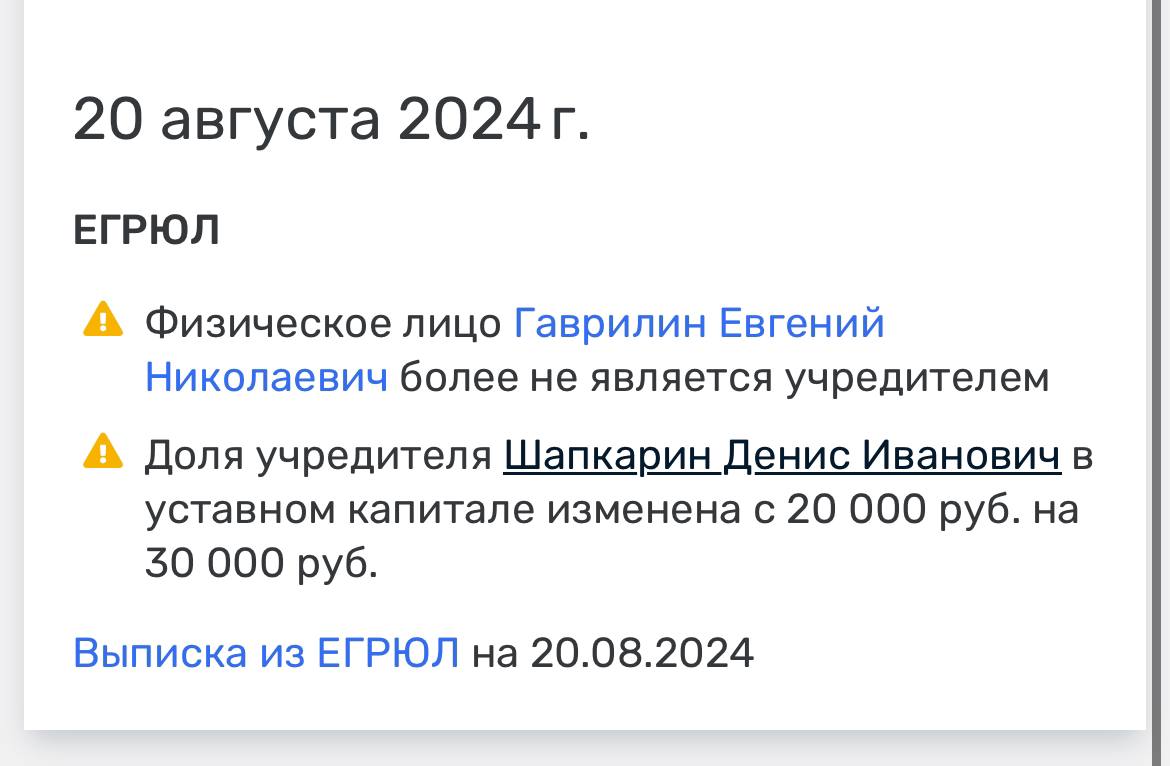 🤓 Между тем, Евгений Гаврилин последовательно выходит из всех юрлиц Нектарина.