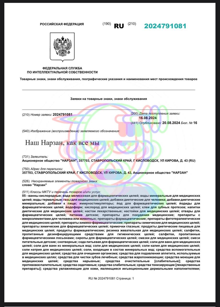 - «Наш Нарзан, как все мы» — регистрирует АО «Нарзан» из Кисловодска.