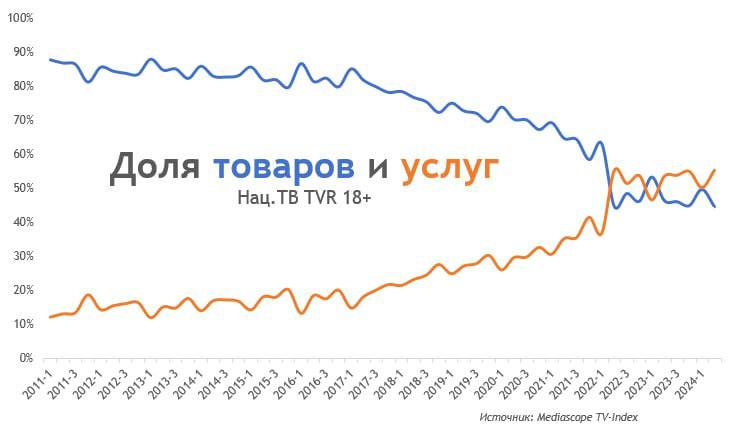 Технически объяснение простое. Финансовые экосистемы победили иностранных FMCG-шников в доле на ТВ. Но за этим фактом скрывается вообще иные модели бизнеса и рекламного целеполагания.