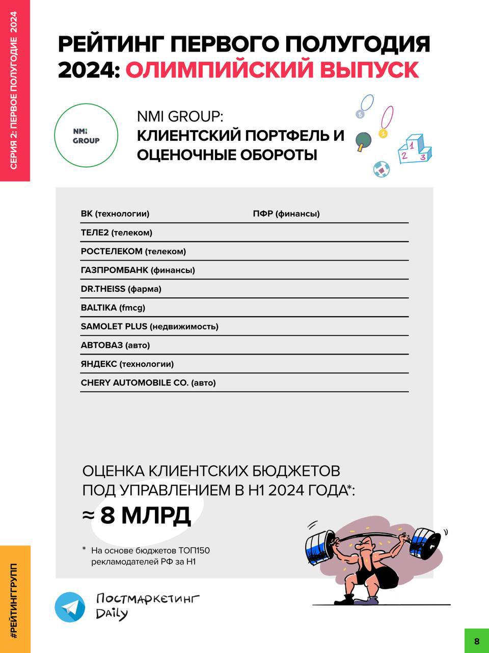 ⚡️ Продолжаем Рейтинг оборотов рекламных групп за первое полугодие 2024 от Постмаркетинга, на основе бюджетов ТОП150 рекламодателей РФ (без объединения онлайна и офлайна, плоского с зеленым и иных манипуляций с цифрами).