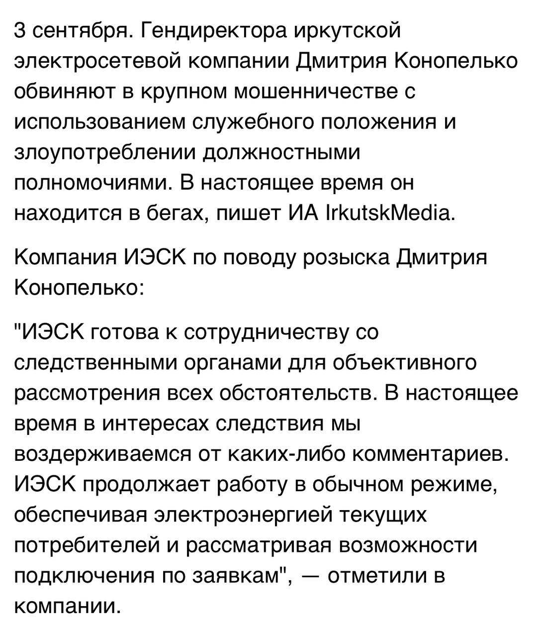 🤔 Объявлен в розыск гендир Иркутской электросетевой компании.