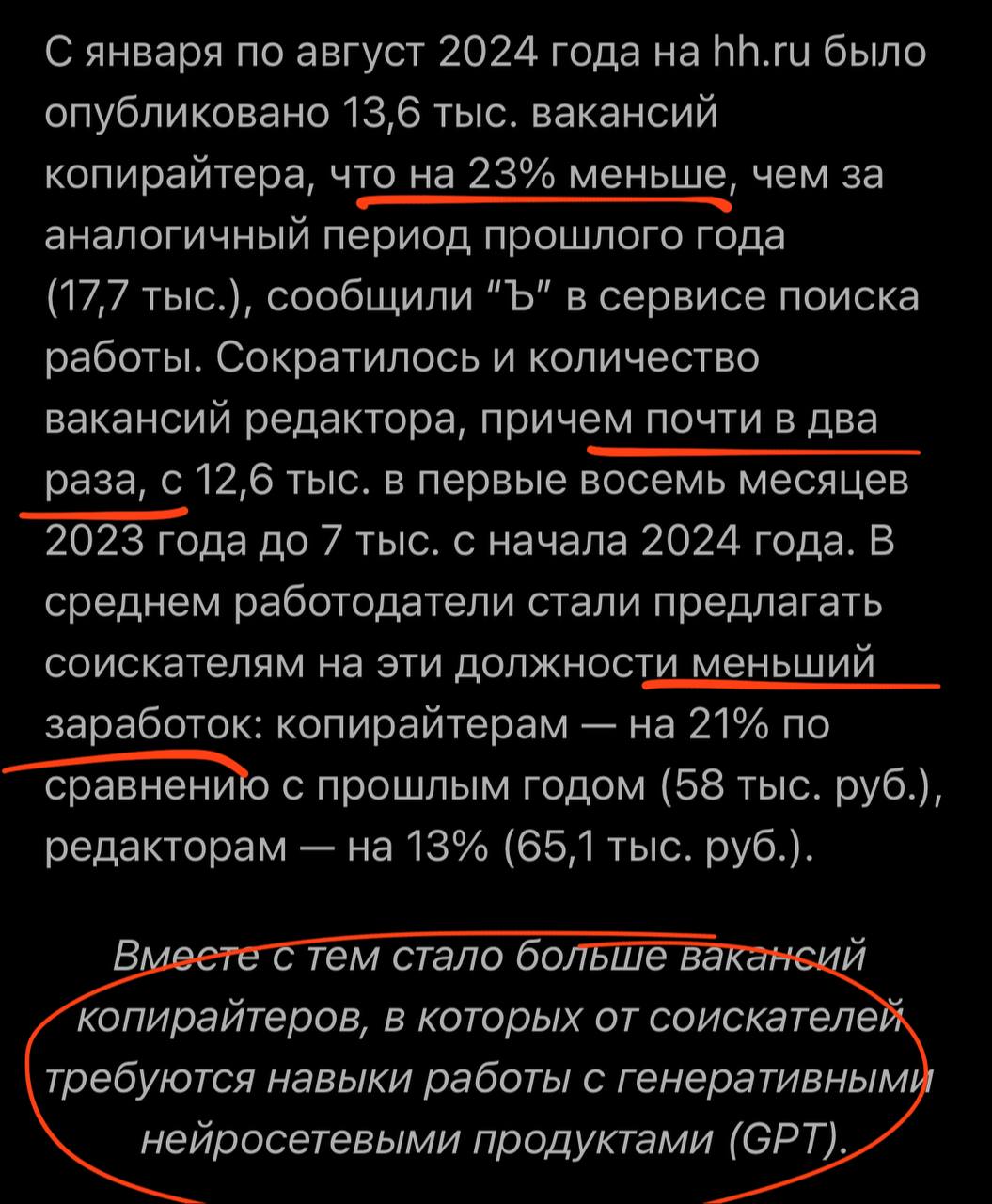 Любопытная статья на страницах Ъ, повествующая о численном сокращении вакансий копирайтеров (тех, которые про тексты, а не про идеи и смыслы).