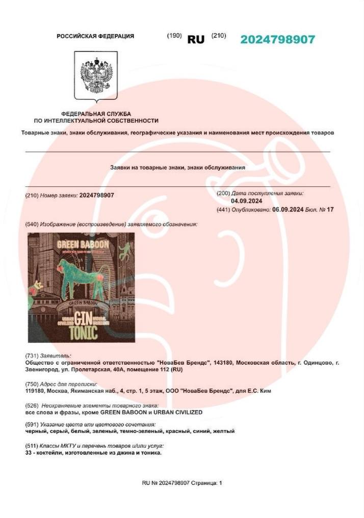 🤓 И зеленый бабуин с красной задницей, которого НоваБев (Белуга) регистрирует в качестве товарного знака для всякого пойла.