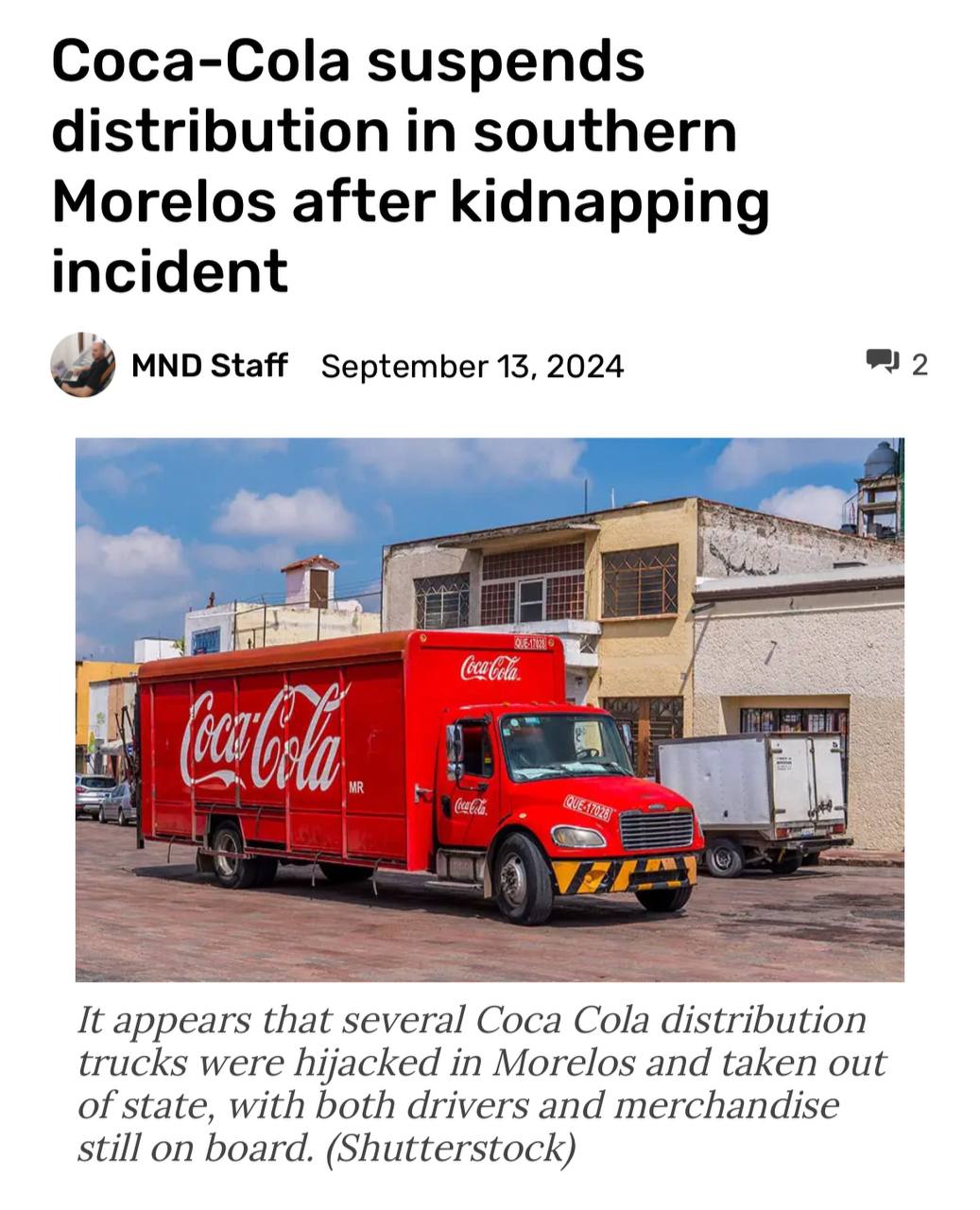 Похоже, что грузовики Coca-Cola были фактически угнаны преступниками и вывезены из Морелоса с законными водителями на борту. Жертвы были впоследствии освобождены.