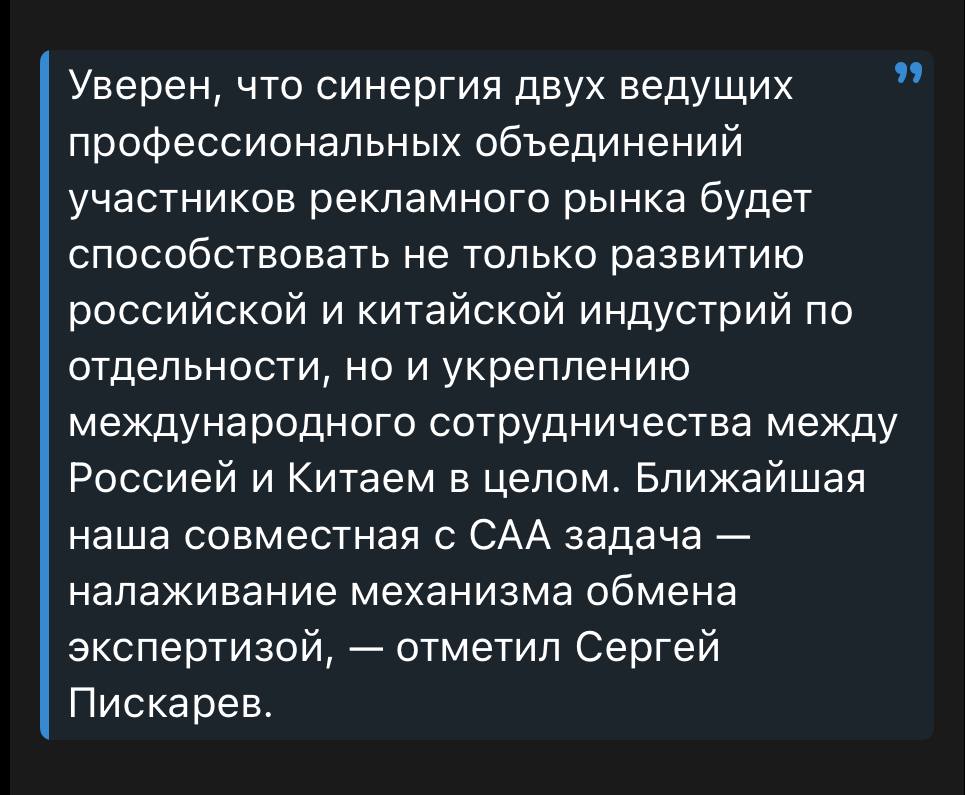 Китайская рекламная ассоциация всецело поддержала идею АКАР по созданию Международной ассамблеи рекламных ассоциаций стран БРИКС.