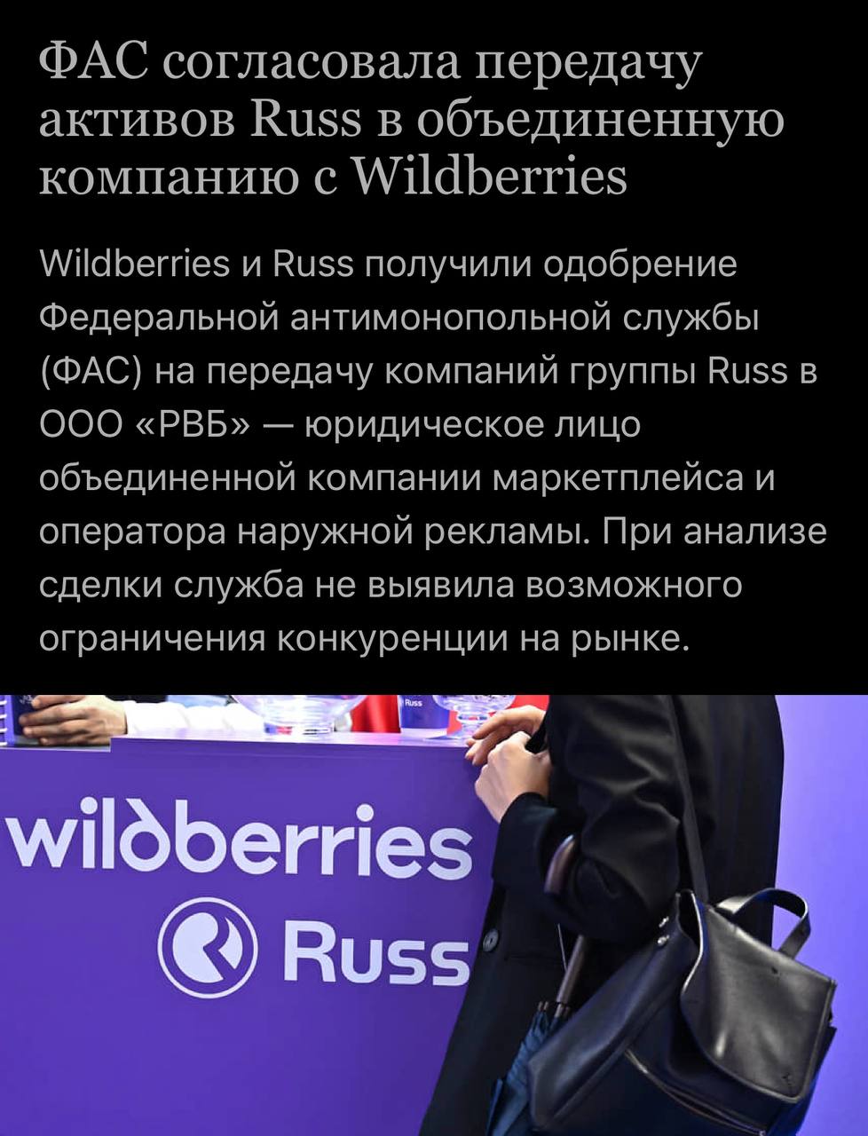 🤓 Быстро дело делается… Если мы правильно понимаем, слияние полностью легализовано и RUSS теперь — полноценный WB.